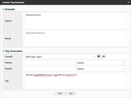 Tag Generation: You can check and edit the syntax of the Convert Option to be converted in the form of a delimiter. You can enter it in Convert Option, or you can create it by directly entering a Tag.