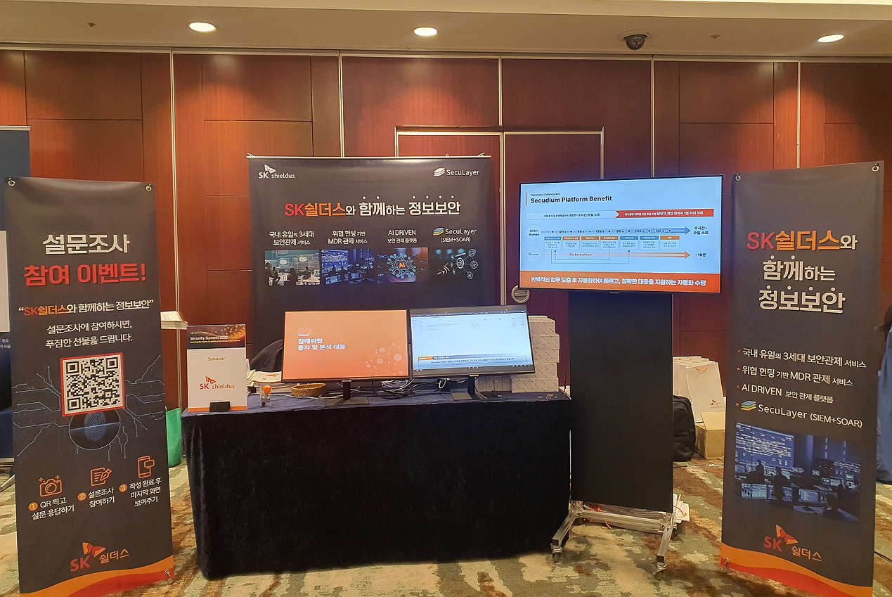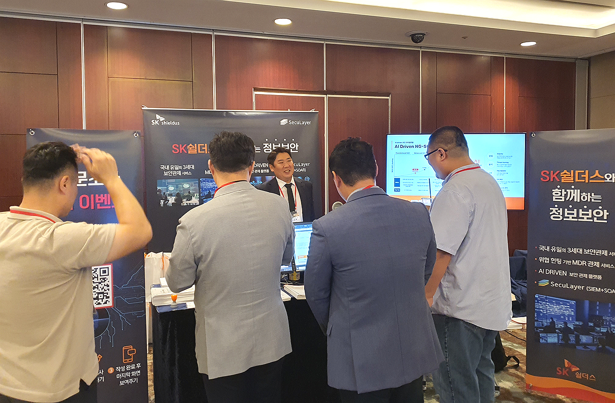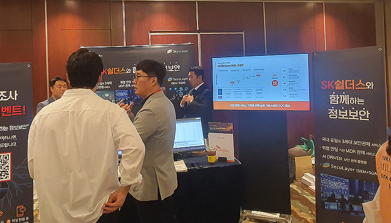 현장에서는 SK쉴더스의 AI 기반 보안관제 플랫폼 '시큐디움'과 저희 시큐레이어의 보안 솔루션이 함께 소개되어 많은 분들의 관심을 받았습니다.