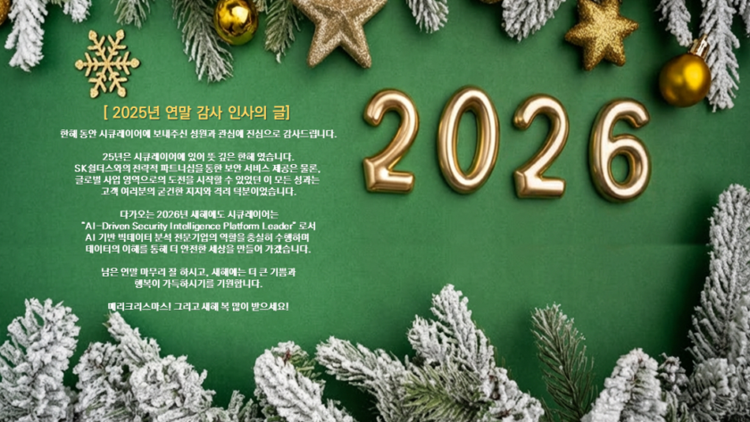 시큐레이어, 2025년 연말 인사의 글 공지사항2025-12-112KViews0Likes0Comments2021년 5월 12일부터 14일까지 일산 KINTEX 에서 열린 [SECON & eGISEC 2021] 전시 참가를 성황리에 종료하였기에 이에 인사 말씀 전합니다.Read More